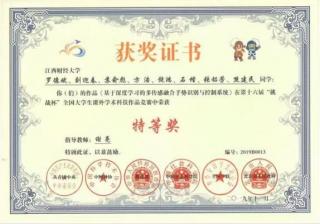 学院学生科创团队2019年以全国本科第一名的成绩,与清华大学博士生团队并列获得“挑战杯”科技发明类特等奖,这是挑战杯办赛30年以来,江西省高校中“挑战杯”科技发明类全国特等奖零的突破,也是全国财经院校科技类全国特等奖零的突破。
