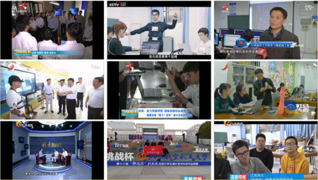 学院学生科创项目《模拟触感交互控制的助盲系统》获第十八届“挑战杯”全国大学生课外学术科技作品竞赛全国一等奖(在江西省高校所有国赛项目中排第一顺位,主题赛道国奖我校共3项,我院占1项)。被中国教育电视台《全国教育新闻联播》、江西教育电视台《教育新闻》详细报道。
