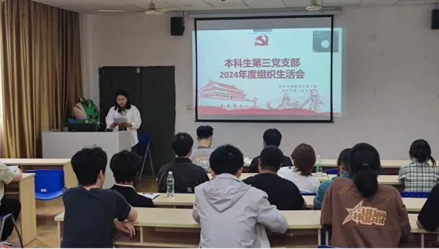 2025年3月26日,软件与博彩投注 本科生第三党支部于荟庐一楼报告厅召开组织生活会暨深入贯彻中央八项规定精神学习教育启动会。会议由支部副书记徐海涛主持。会议紧密围绕深入学习贯彻党的二十大精神这一核心,坚持自我革新,旨在强化党支部的政治引领和组织建设能力。