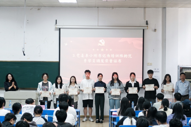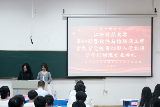 2025年4月29日12:30,软件与博彩投注 于麦庐大学生活动中心D101举行分党校第二十四期入党积极分子培训班结业典礼。出席典礼的有学院党委书记季小刚同志、党委副书记匡琳同志、学工办主任兼本科生第二党支部书记钟英娥同志、本科生第五党支部书记陶丽同志、本科生第三党支部书记陈菲同志、本科生第一党支部书记邹璐同志。典礼由匡琳同志主持。