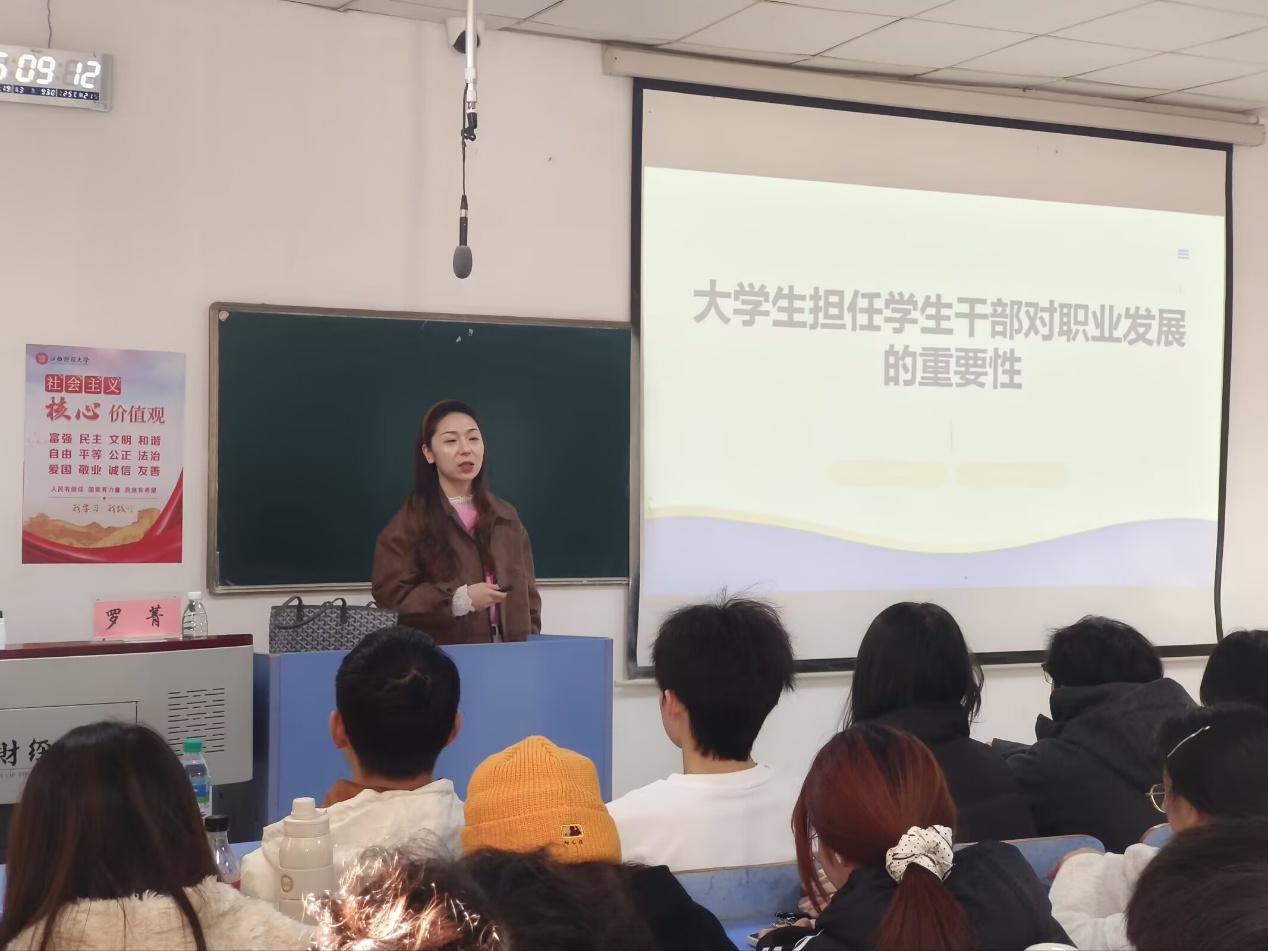 围绕“学生干部如何做好职业规划”这一主题,罗菁老师从四个方面展开了系统讲解:学生干部经历的重要性、走向岗位的显著优势、如何理性看待学生干部经历,以及学生干部经历在选拔机制中的特殊价值。