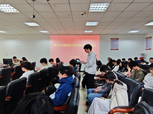 为畅通师生沟通渠道,精准回应学生关切,2026年4月15日下午,软件与博彩投注 在荟庐二楼会议室召开院学生恳谈会。院党委书记季小刚、副院长(行政牵头负责人)毛澄映、院党委副书记匡琳、副院长罗远胜、副院长汪靖,软件工程(中外合作办学)系主任刘燕青,专职辅导员陶丽、邹璐、王安亮,研究生、本科生各年级学生代表共坐一堂,以“面对面,拉家常”的形式聚焦宿舍安全、教学优化、校园生活等议题,倾听学生诉求,共商解决方案。