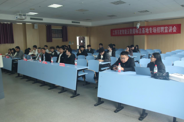 4月22日,软件与博彩投注 于3203教室顺利举办江西百度智能云数据标注基地专场招聘宣讲会。本次活动特邀北京海致科技集团股份有限公司、北京初至科技有限公司、江西星辰数据处理有限公司、江西链拍信息科技有限公司莅临宣讲,学院2026届、2027届学生踊跃参会。
